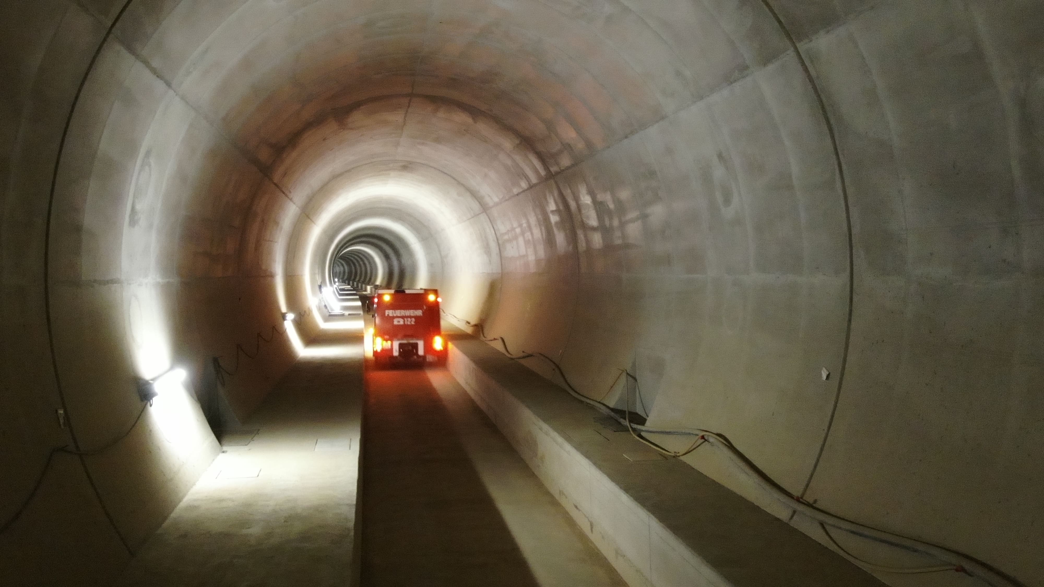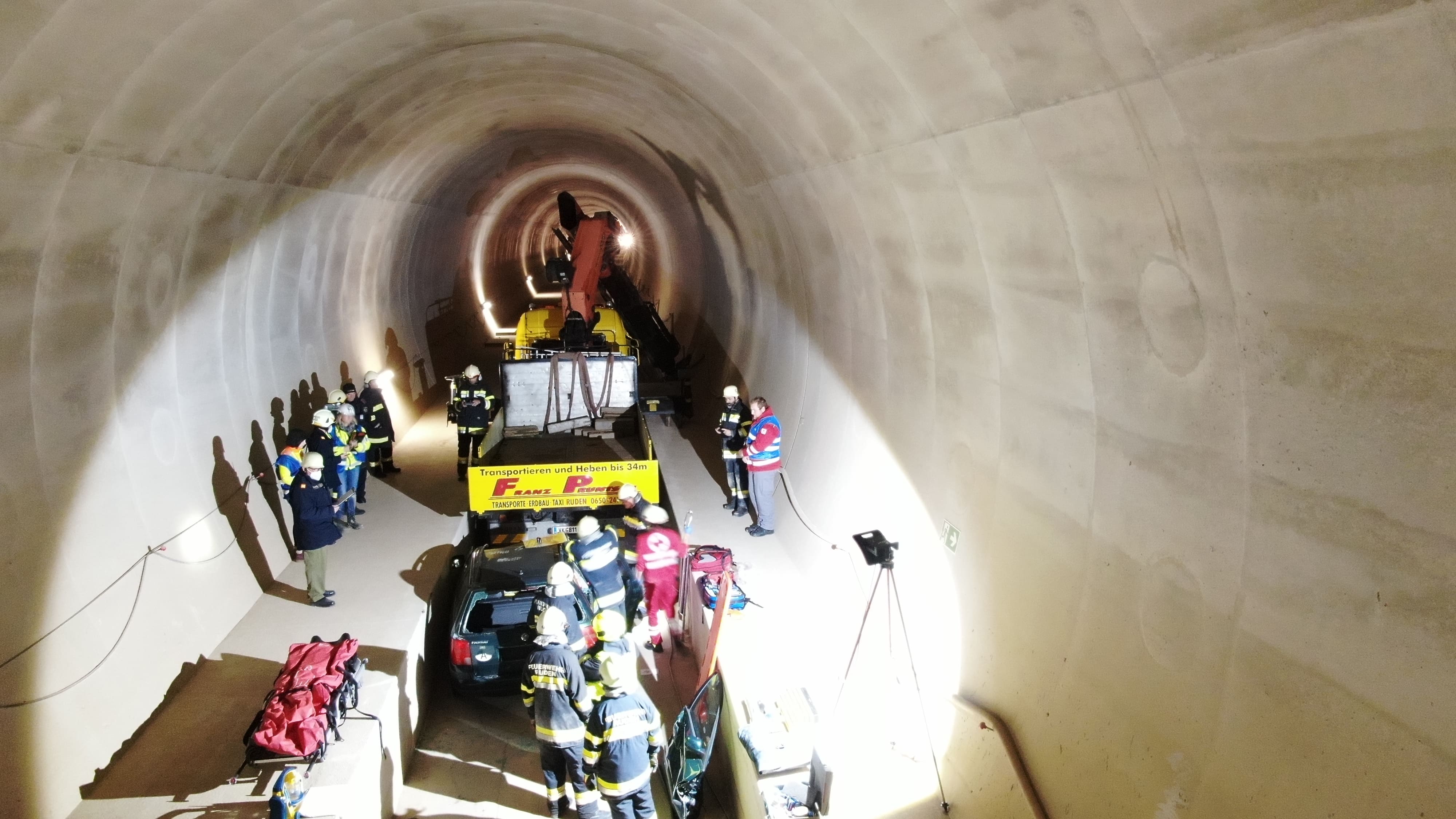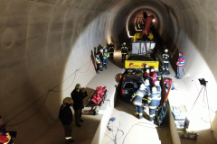 Am Freitag den 05. November wurde im Bau befindlichen Langenbergtunnel der Koralmbahn eine Übung abgehalten. Übungsannahme war ein Brand in der Lüfterzentrale wo Personen mit einem PKW Richtung Eis Ruden flüchteten und im verrauchten Tunnel einem Baustellenfahrzeug auffuhren. Einsatzmeldung für die Feuerwehren Rinkenberg, Ruden und Untermitterdorf: Zusammenstoß eines Pkw’s mit einem Baufahrzeug und 3 eingeklemmte Personen. Die Feuerwehren Rinkenberg, Ruden und Untermitterdorf wurden per stillen Alarm von der LAWZ alarmiert. Die Einsatzleitung wurde vor dem Südportal des Tunnels im Eis gebildet. Die Feuerwehr Ruden und Untermitterdorf bereiteten sich vor dem Tunnel auf den Einsatz vor und es wurden die Rettungsgeräte der FF Ruden vom TLF in das KLF verladen. Aus Platzgründen konnte die FF Ruden nur mit dem KLF in den Tunnel vordringen. Auf der Höhe des ersten Querschlages mussten die Rettungsgeräte entladen und in die zweite Tunnelröhre gebracht werden. Die FF Ruden wurde hier von der FF Untermitterdorf unterstützt. Am Unfallort befanden sich bereits Sanitäter des Rote Kreuzes, welche zu Fuß in die zweite Tunnelröhre vorgedrungen sind. Die Feuerwehr Untermitterdorf errichtete inzwischen mittels Hydroschild eine Wasserwand, welche den Rauch vom Brand der Lüfterzentrale vom Einsatzort fernhielt. Die Feuerwehr Rinkenberg unterstützte bei der Bergung der Verletzten Personen und den Abtransport mittels KLF zum Südportal wo sie an die Rettung übergeben wurden. Im Anschluss gab es eine kurze Übungsbesprechung in St.Paul wo die ÖBB zu einem Getränk und einer Stärkung einlud. Danke an alle Einsatzkräfte für die tolle Zusammenarbeit und der ÖBB für die Möglichkeit dies zu üben.